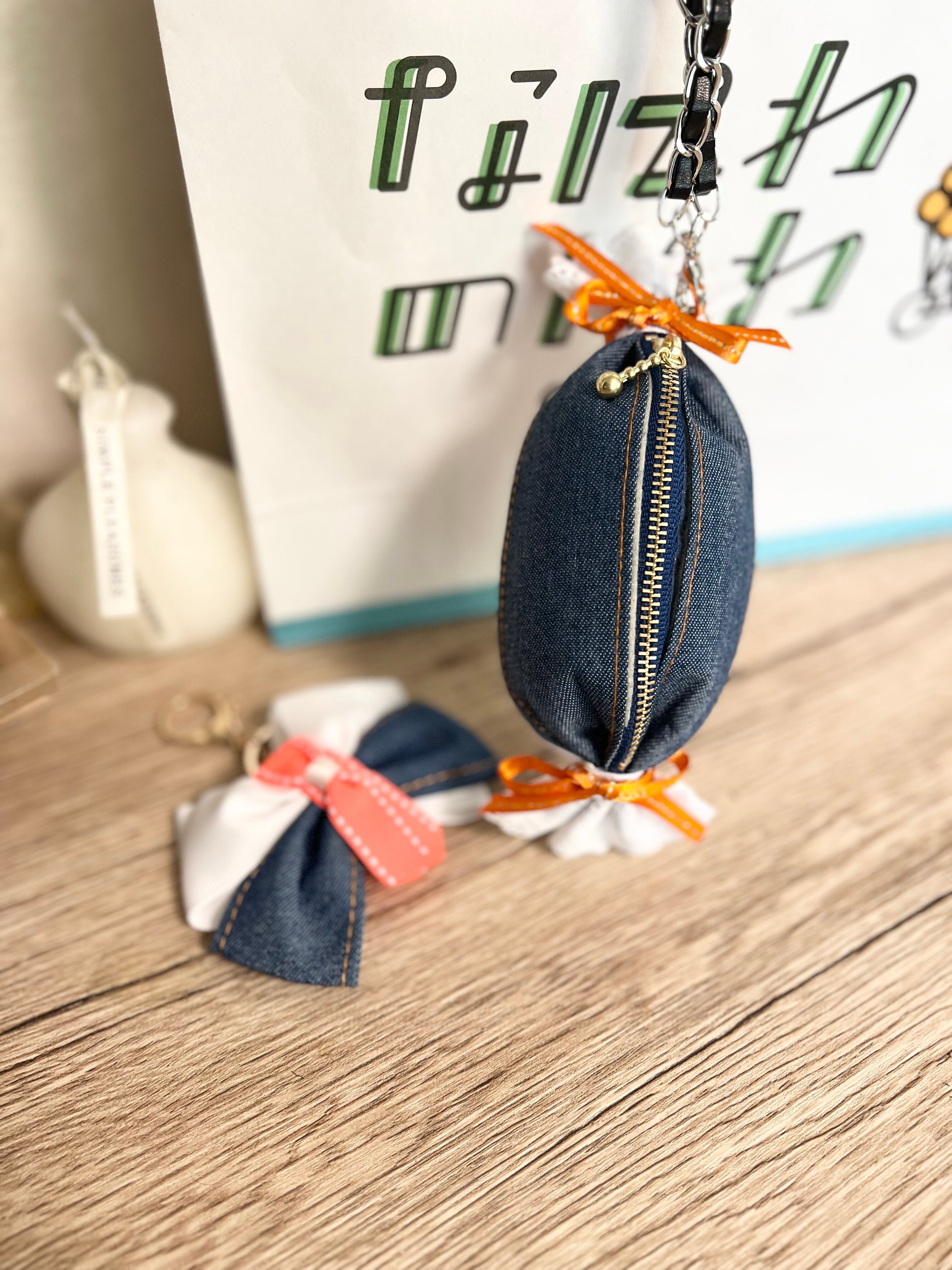 画像一枚目、右側のなにわのにわをモチーフにしたデニムのキャンディポーチです。
