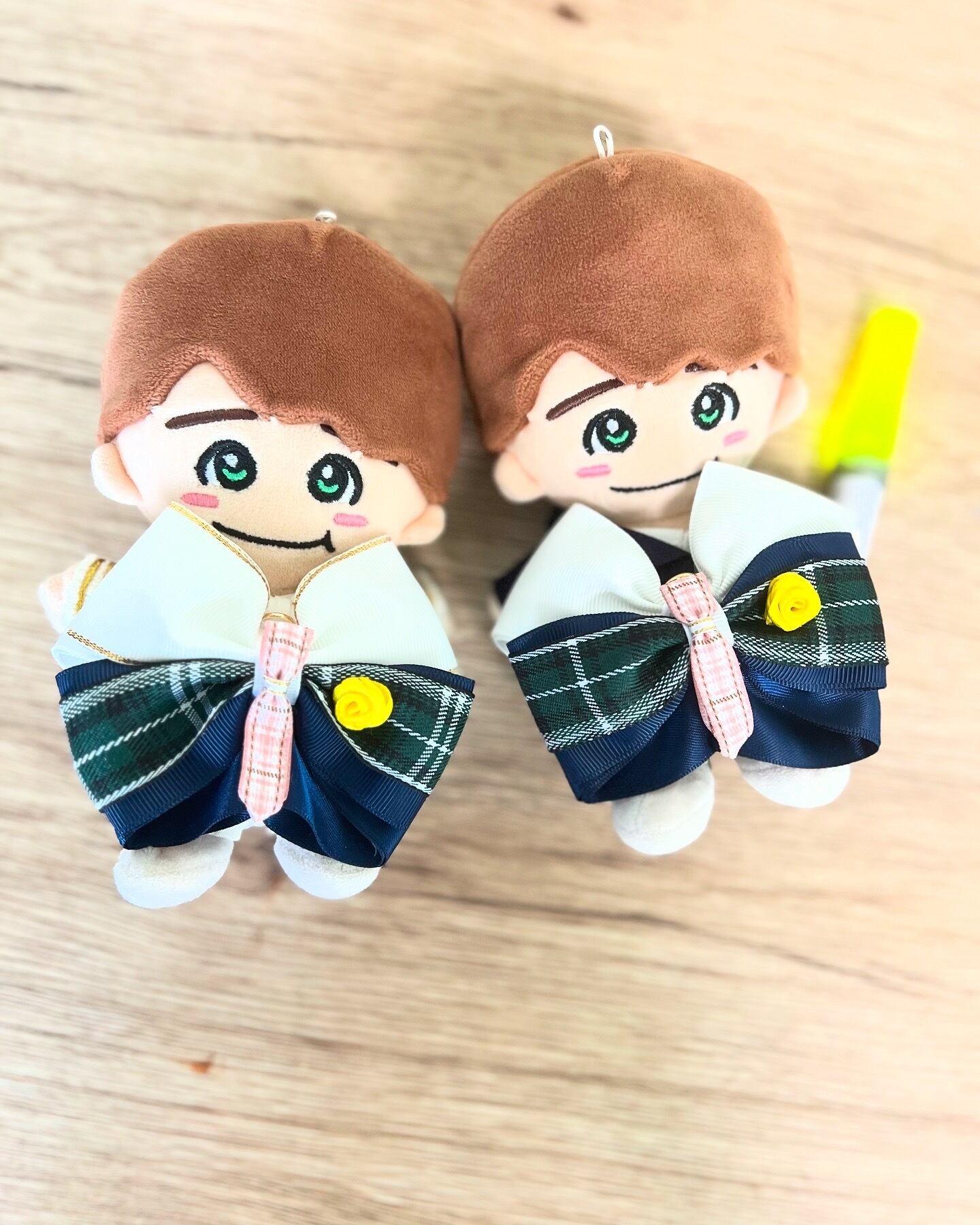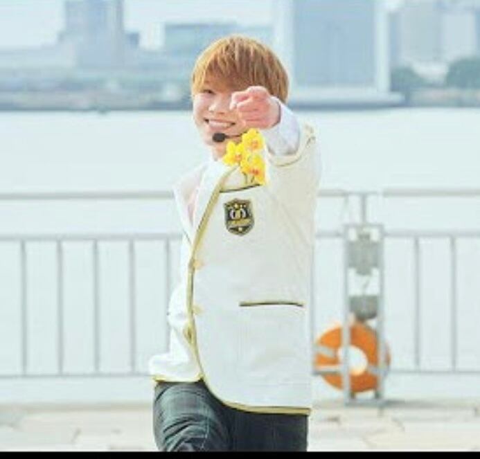 君がトクベツ〜本編歌唱のYOU ARESpecial制服風の衣装リボンです。白にジャケットにチェックパンツ、胸元の皇太くんカラーのお花がポイントです。