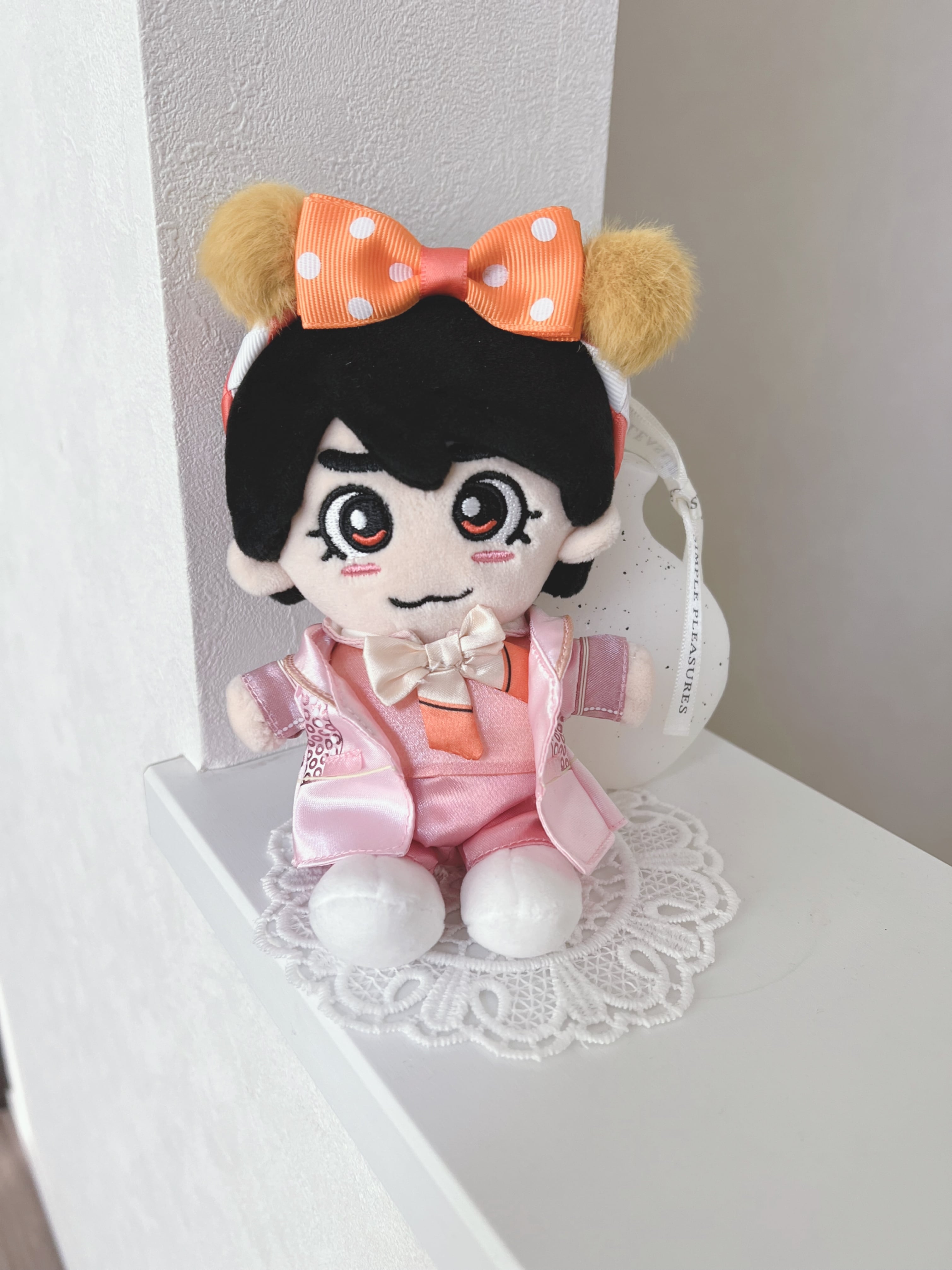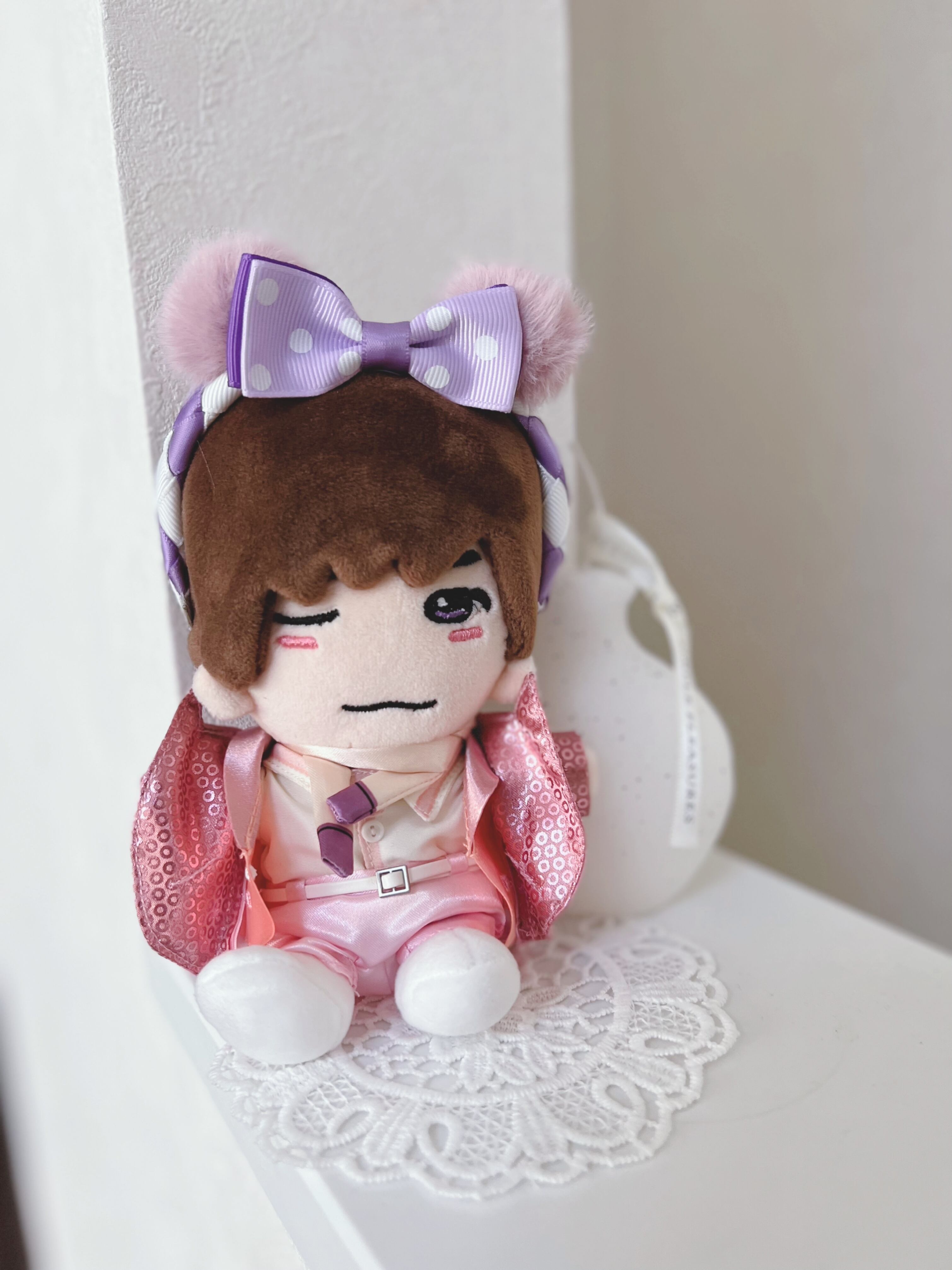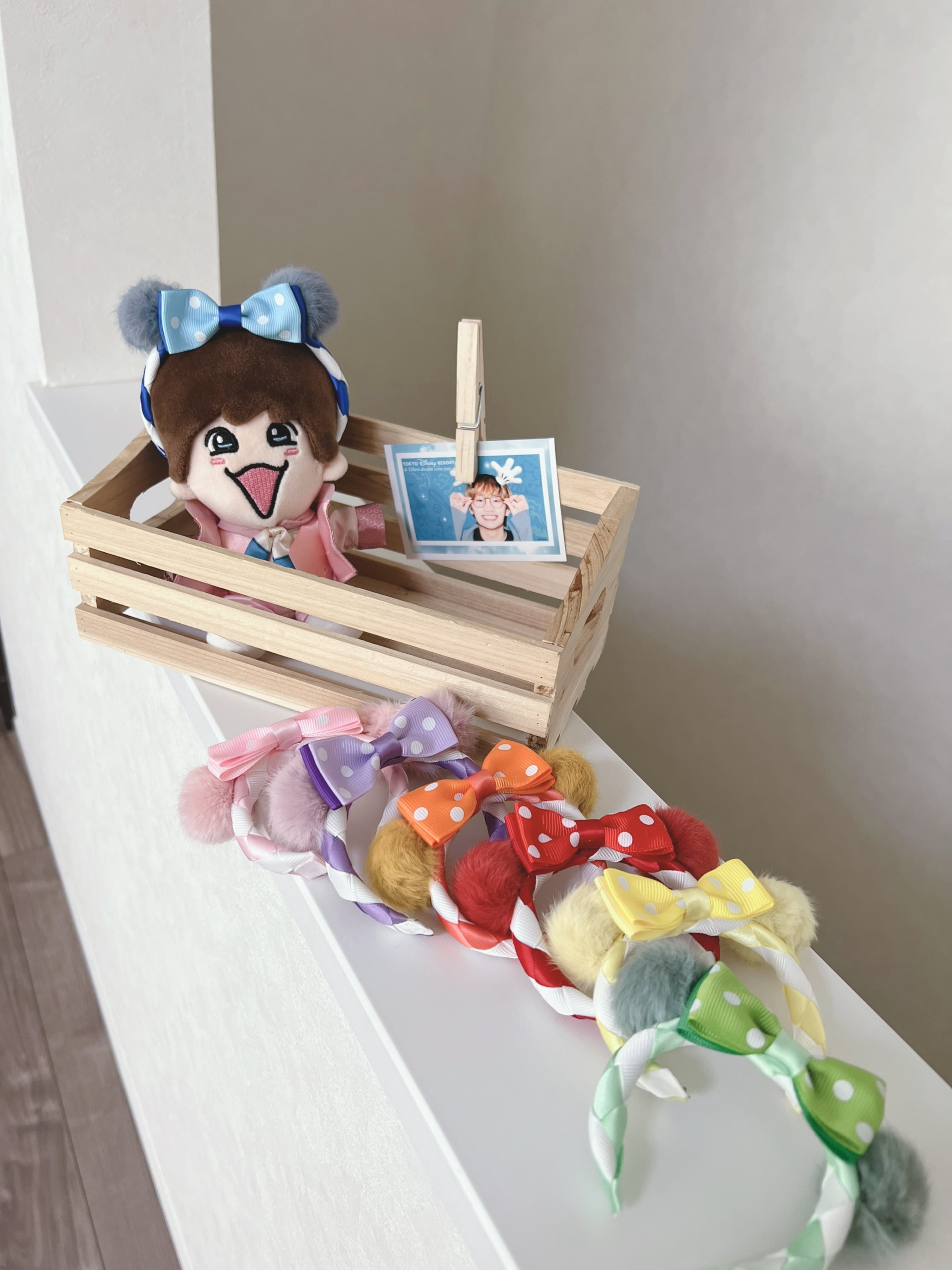 編み込みデザインとふわふわのクマちゃんファーが他にはないデザインなので、ちびぬいのオシャレや推しのバースデー、テーマパーク風のフォト撮影にもぴったり♫