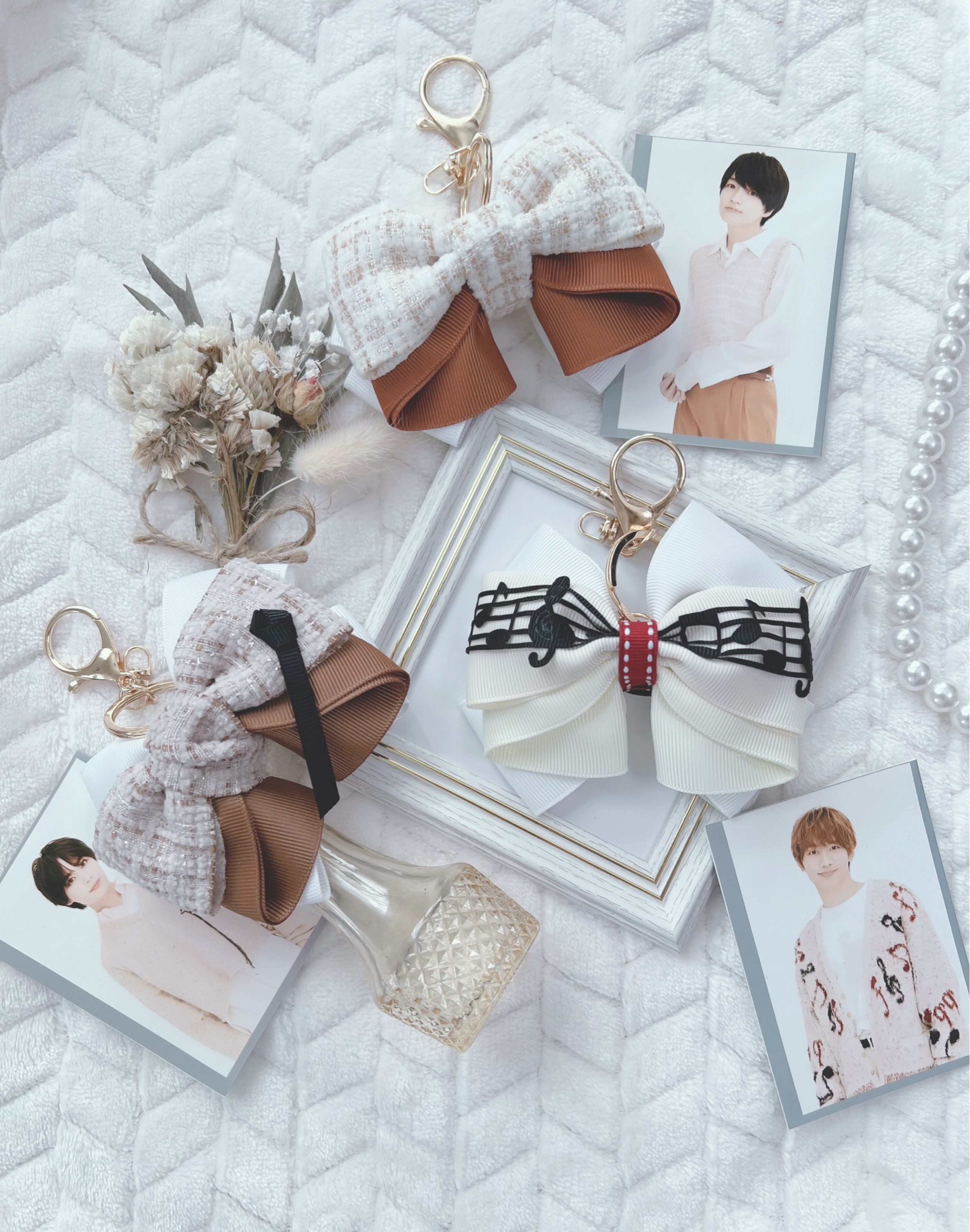 秋らしい淡色のコーデを基調としたリボンなのでカフェでの推し活やパネル撮影のお供にもオススメです!